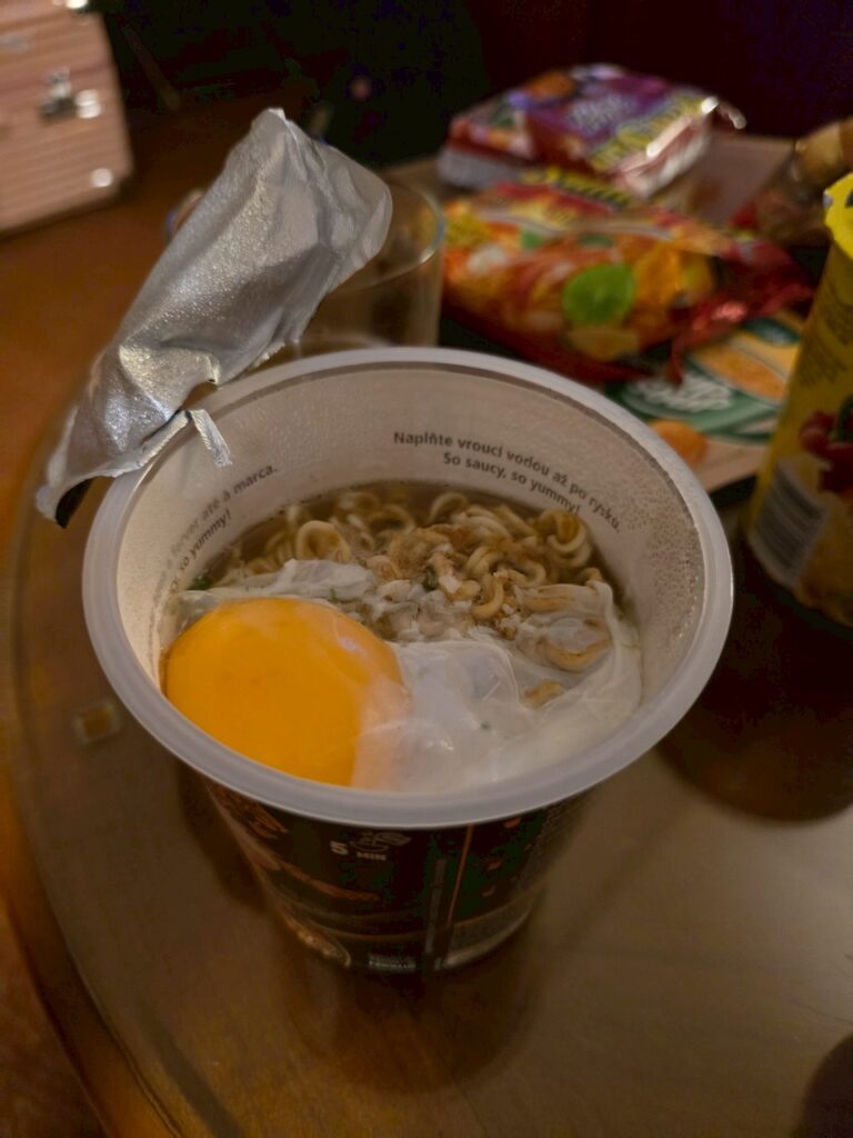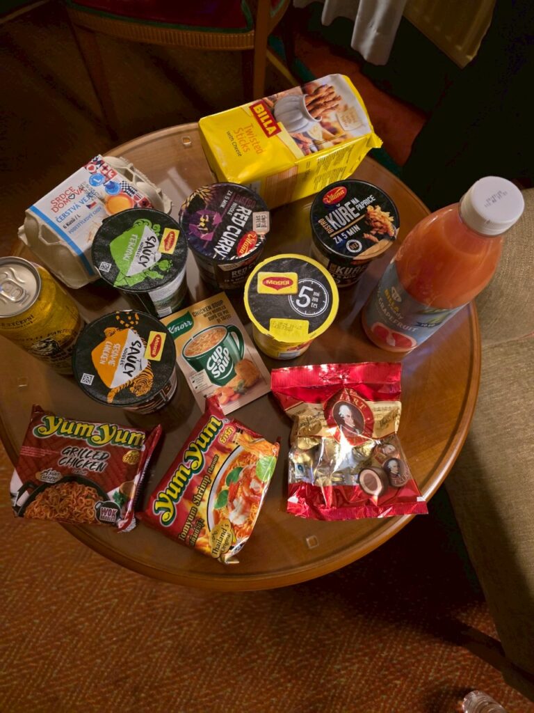 買了泡麵和各種小零食回房間煮
