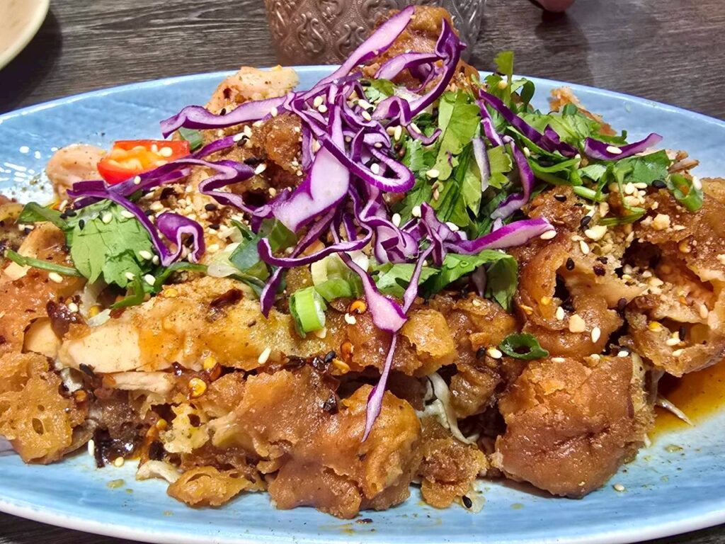 然後椒麻雞腿一份也超大快飽死