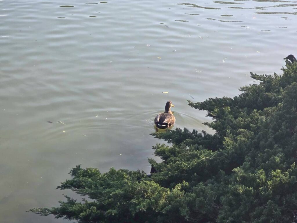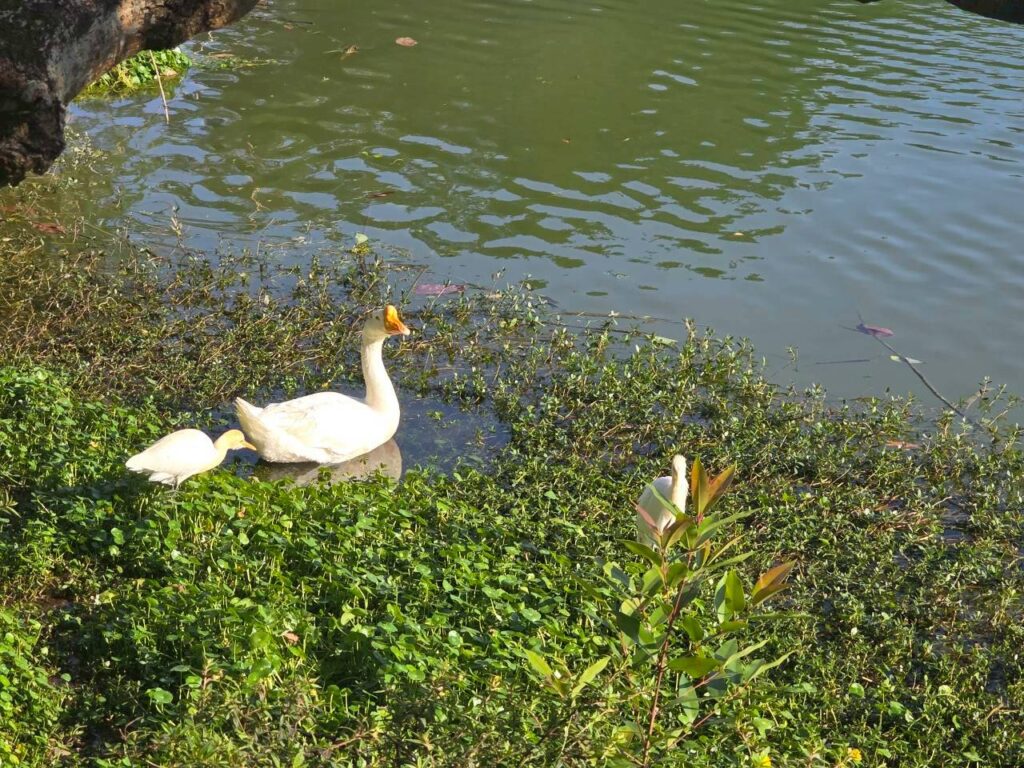 湖面還有黑白鴨子出沒(還是鵝?)
